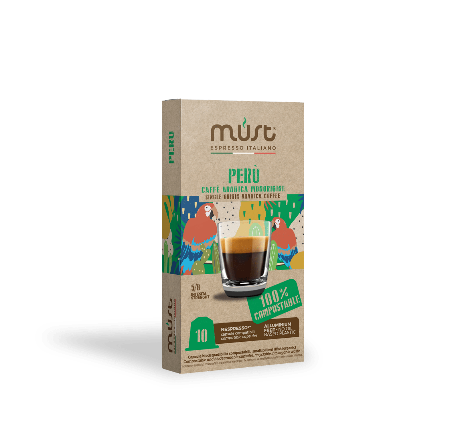 Three precious 100% Arabica single origin varieties of coffee coming from Kenya, Colombia and Peru packaged in 100% biodegradable and compostable capsules. The capsules, made by renewable energies, are aluminium free, do not contain oil based plastic and are completely recyclable into organic waste.